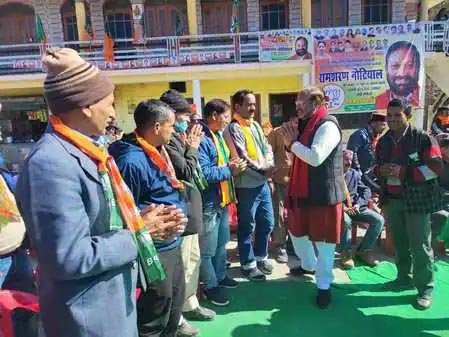 भाजपा प्रत्याशी रामशरण नौटियाल ने गुरुवार को ब्रह्मनाव, भमराड, बडनू, उदपाल्टा, कोरुवा, अष्टाड आदि गांवों में चुनावी सभाएं और जन संपर्क कर वोट मांगे। इस दौरान कहा कि जौनसार बावर क्षेत्र परिवारवाद के चलते विकास से कोसों दूर है। जिसके चलते न तो क्षेत्र का विकास हुआ और न ही यहां के युवक-युवतियों को रोजगार मिला। युवा वर्ग रोजगार के लिए दर-दर भटक रहा है। कहा कि पहली बार जौनसार बावर में लोग परिवारवाद से बाहर निकल रहे हैं और विकास के लिए भाजपा को वोट देने जा रहे हैं। कहा कि इस बार उनकी जीत सुनिश्चित है। नौटियाल ने भारी बहुमत से विजयी होने का दावा करते हुए कहा कि चुनाव जीतने के बाद जौनसार बावर में विकास की नयीं इबारत लिखी जायेगी। क्षेत्र का चहुंमुखी विकास करने के साथ ही युवक और युवतियों को रोजगार देंगे।
