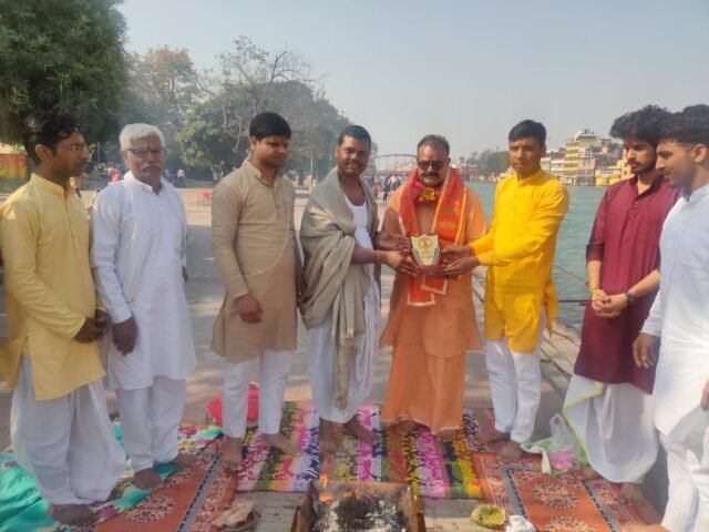 हरिद्वार। पंच यज्ञ प्रचारिणी सभा कोसीकलां मथुरा द्वारा विष्णु घाट पर विश्व शांति एवं सर्व कल्याण के लिए एकादशी पर चतुर्वेद पारायण महायज्ञ का आयोजन किया गया। इस अवसर पर मुख्य अतिथी अखंड परशुराम अखाड़े के अध्यक्ष पंडित अधीर कौशिक को स्मृति चिन्ह देकर सम्मानित भी किया गया।