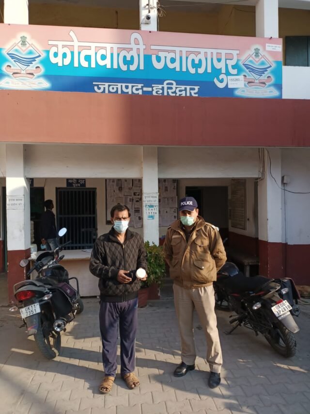 मादक पदार्थो के अवैध कारोबार के खिलाफ चलाए जा रहे अभियान के तहत ज्वालापुर कोतवाली पुलिस व नारकोटिक्स सैल ने मुखबिर की सूचना पर कार्यवाही करते हुए लालपुल के निकट अंडरपास से एक आरोपी को स्मैक सहित गिरफ्तार किया है। आरोपी के खिलाफ एनडीपीएस एक्ट के अंतर्गत मुकद्मा दर्ज कर न्यायालय में पेश किया गया। जहां उसे न्यायिक अभिरक्षा में भेज दिया गया। बाजार चौकी प्रभारी एसआई आनंद मेहरा ने बताया कि मुखबिर से मिली सूचना के आधार नारकोटिक्स सेल के साथ संयुक्त रूप से कार्यवाही करते हुए आरोपी मनीष मित्तल पुत्र जय भगवान मित्तल निवासी कीर्ति पाल (कुत्तीमारान) गली मोहल्ला चौहानान ज्वालापुर को गिरफ्तार किया गया। आरोपी के कब्जे से 8.24 ग्राम स्मैक बरामद हुई है। पूछताछ में आरोपी ने बताया कि बरामद स्मैक उसने ग्राम गाड़ोवाली से खरीदी है। पुलिस टीम में बाजार चौकी प्रभारी एसआई आनंद मेहरा के अलावा कांस्टेबल वीरेंद्र चौहान, रोहित, नारकोटिक्स सेल के कास्टेबल पूरन सिंह दानू आदि शामिल रहे। कोतवाली प्रभारी चन्द्र चन्द्राकर नैथानी ने बताया कि नशे के कारोबारियों के खिलाफ अभियान लगातारी रहेगा।