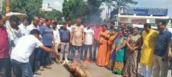 मंगलवार को कांग्रेस प्रदेशध्यक्ष गणेश गौदियाल के आह्वान पर महानगरध्यक्ष जगदीश तनेजा सहित कांग्रेसी बाटा चौक पर एकत्र हुए और पुतला दहन किया। आरोप था कि भाजपा के प्रदेश प्रभारी द्वारा बीते दिवस कांग्रेस नेता राहुल गांधी के खिलाफ अशोभनीय भाषा का प्रयोग कर टिप्पणी की थी। भाजपा के प्रदेश प्रभारी द्वारा अशोभनीय टिप्प्णी कर अहंकारी होने का परिणाम दिया है। भाजपा की दोहरी मानसिकता को उजागर करता है, जबकि गांधी परिवार का इतिहास देश के लिए बलिदान का रहा है। कहा कि भाजपा नेता अपने बयानों पर माफी मांगे या फिर भाजपा केंद्रीय नेतृत्व प्रदेश प्रभारी को बर्खास्त करें। यहां ब्लॉक अध्यक्ष दिनेश पंत, पूर्व जिला पंचायत सदस्य संदीप चीमा, साजिद खान, मीना शर्मा, सुशील गाबा,पार्षद मोहन खेड़ा, सचिन मुंजाल, रणजीत सिंह राणा, विजय अरोड़ा, चेतन भट्ट, रामाधारी गंगवार, प्रकाश अधिकारी, मोनिका ढाली, सरोज रानी, उमा सरकार, मोनू निषाद, चंद्र शेखर गांगुली, इंदरजीत सिंह आदि मौजूद थे।