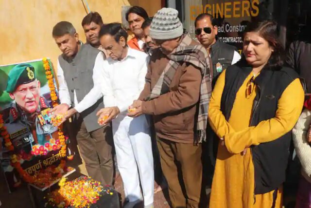 ऋषिकेश। सीडीएस जनरल बिपिन रावत, उनकी पत्नी और अन्य सैन्य अधिकारियों के निधन पर कांग्रेस ने श्रद्धांजलि सभा आयोजित की। कांग्रेस प्रदेश महासचिव राजपाल खरोला ने सैन्यधाम का नाम जनरल रावत के नाम पर रखने की मांग राज्य सरकार से की। गुरुवार को दून रोड पर आयोजित श्रद्धांजलि सभा में कांग्रेसियों ने जनरल रावत के निधन पर शोक जताया। खरोला ने कहा जनरल रावत का निधन देश और विशेष रूप से उत्तराखंड के लिए अपूर्णीय क्षति है। कहा कि उत्तराखंड बोर्ड के पाठ्यक्रम में जनरल रावत के देश के प्रति योगदान को शामिल किया जाए। मौके पर सुधीर राय, मदन मोहन शर्मा, अरविन्द जैन, भगवान सिंह पंवार, मधु जोशी, राजेन्द्र गैरोला, उमा ओबराय, अशोक सडाना, जितेन्द्र पाल पाठी, जतिन जाटव, अभिषेक शर्मा, जयपाल सिंह, जीतेन्द्र यादव, सोनू पाण्डेय, एकांत गोयल, राहुल पाण्डेय आदि मौजूद रहे।