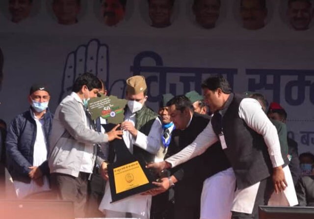 राहुल गांधी ने कहा कि मैं आपको गारंटी देता हूं अगर उत्तराखंड में हमारी सरकार बनी तो किसानों की रक्षा होगी और उनकी पूरी मदद होगी। नए कानून बनाए जाएंगे तो किसानों के लिए बनाए जाएंगे। 23 पूंजीपतियों के लिए कानून नहीं बनाए जाएंगे और हमारे जो युवा-छोटे दुकानदार हैं, उन्हें हमारी सरकार पूरी सहायता देगी। जिससे प्रदेश में फिर से रोजगार पैदा होंगे। रोजगार उत्तराखंड में तब आएगा जब छोटे व्यापारियों की मदद होगी। दो-तीन पूंजीपतियों को पूरा धन देने से उत्तराखंड आगे नहीं जा सकता। जब हमारी सरकार आएगी तो किसानों की मदद होगी, रोजगार देगी, कानून बनाएगी लेकिन किसानों के लिए बनाएगी। इतना कहकर राहुल गांधी ने अपना संबोधन समाप्त कर दिया।