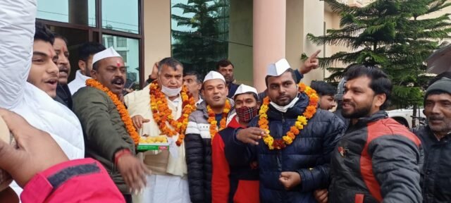 हरिद्वार नगर विधानसभा सीट से सतपाल ब्रह्मचारी को प्रत्याशी बनाए जाने पर शहर कांग्रेस सेवा दल के अध्यक्ष नितिन यादव यदुवंशी के नेतृत्व में उपाध्यक्ष तरुण सैनी, महामंत्री दीप बिष्ट, सचिव पवन शर्मा, कुश पांडे आदि कार्यकर्ताओं ने फूलमाला पहनाकर व मिठाई खिलाफ सतपाल ब्रह्मचारी का स्वागत किया और जीत की शुभकामनाएं दी। इस अवसर पर शहर कांग्रेस सेवादल के शहर अध्यक्ष नितिन यादव यदुवंशी ने कहा हाईकमान का सतपाल ब्रह्मचारी को टिकट देने का निर्णय बिल्कुल सही है। इस निर्णय से कांग्रेस कार्यकर्ताओं में खुशी की लहर व जश्न का माहौल है। उन्होंने कहा कि सतपाल ब्रह्मचारी लोकप्रिय नेता हैं। नगर पालिका अध्यक्ष पद रहते हुए उनके द्वारा शहर हित में किए गए कार्यो को जनता आज भी याद करती है। जनहित से जुड़े मुद्दों पर भी वे लगातार संघर्ष कर रहे हैं। लॉकडाउन में गरीब जरूरतमंदों की मदद करने में उन्होंने निर्णायक भूमिका निभायी। नितिन यादव ने कहा कि जनता बदलाव चाहती है। कार्यकर्ता एकजुट होकर विधानसभा चुनाव में सतपाल ब्रह्मचारी की जीत निश्चित करेंगे। सतपाल ब्रह्मचारी ने हाईकमान का आभार व्यक्त करते हुए जनता भाजपा की नीतियों से निराश हो चुकी है। जनता महंगाई से परेशान है। युवा रोजगार के लिए भटक रहे हैं। उन्होंने कहा कि चुनाव में जनता का आशीर्वाद उन्हें मिलेगा। विधायक चुने जाने पर संतों की मान मर्यादाओं के अनुसार शहर का विकास किया जाएगा। हरिद्वार को नशा मुक्त व रोजगार युक्त बनाया जाएगा। इस दौरान कार्यकर्ताओं ने ढोल नगाड़ों की धुन पर जमकर नृत्य किया।